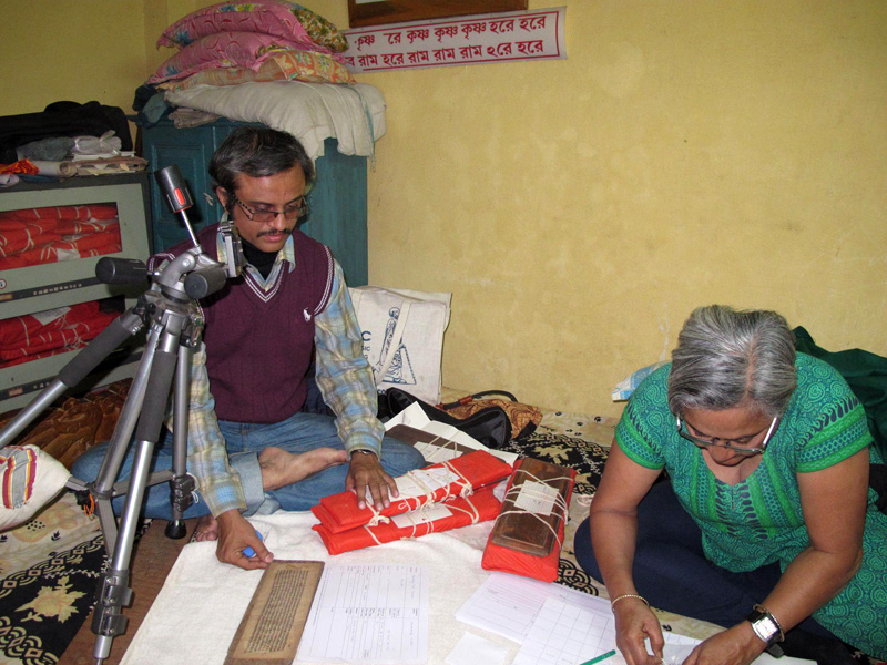 The manuscripts being disorganized, he entrusted the BRC team with the responsibility of arranging them. For fifteen days, the team worked at their house, arranging, preserving, and digitizing the manuscripts. During this process, the team also discovered a very old manuscript of Haribhaktivilāsa in excellent condition.